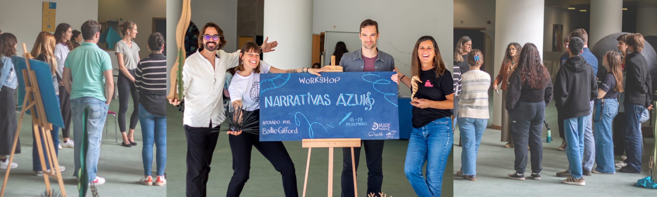 O Workshop de Narrativas Azuis (Blue Stories Workshop em inglês) nasceu da nossa experiência vivida no MARE-Madeira. Trabalhando neste espaço, sabemos quão empolgante, interessante e diverso é o mundo da comunicação de ciência(!), bem como o quanto ainda há por fazer. Concebemos este workshop, o segundo da nossa série de workshops da Academia Azul (Blue Skills Academy), para oferecer perspetivas e orientação para carreiras em comunicação e educação científica. Embora focado no oceano, as aprendizagens do evento eram aplicáveis a qualquer área da comunicação, revelando as inúmeras formas como podemos conectar-nos com públicos e deixar uma impressão duradoura.
